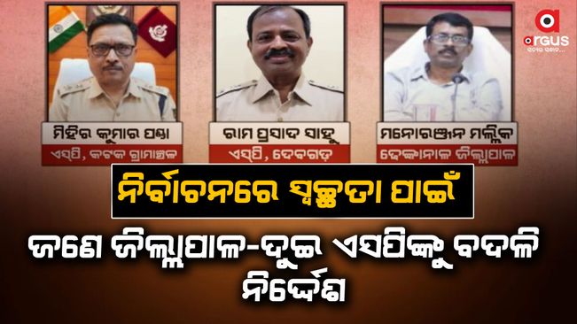 ଢେଙ୍କାନାଳ ଜିଲ୍ଲାପାଳ ମନୋରଂଜନ ମଲ୍ଲିକ, ଦେବଗଡ ଏସପି ରାମ ପ୍ରସାଦ ସାହୁ ଏବଂ କଟକ ଗ୍ରାମାଞ୍ଚଳ ଏସପି ମିହିର କୁମାର ପଣ୍ଡାଙ୍କୁ ବଦଳି କରାଯାଇଛି । ନିର୍ବାଚନରେ ସ୍ବଚ୍ଛତା ଆଣିବା ପାଇଁ ଏହି ପଦେକ୍ଷପ ନିଆଯାଇଛି । ଏହି ଅଧିକାରୀମାନଙ୍କ ନିର୍ବାଚିତ ପ୍ରତିନିଧିମାନଙ୍କ ସହ ଘନିଷ୍ଠତା କିମ୍ବା ପାରିବାରିକ ସମ୍ବନ୍ଧ ରହିଥିଲା । ତେଣୁ ଅବାଧ ଓ ମୁକ୍ତ ନିର୍ବାଚନ ପାଇଁ ସେମାନଙ୍କୁ ବଦଳି କରାଯାଇଛି । ସେହିପରି ପଞ୍ଜାବ, ଗୁଜରାଟ, ପଶ୍ଚିମବଙ୍ଗ ସହ ଓଡ଼ିଶାର କିଛି ବରିଷ୍ଠ ଅଧିକାରୀଙ୍କୁ ବଦଳି କରିବାକୁ ନିର୍ଦ୍ଦେଶ ଦିଆଯାଇଛି ।